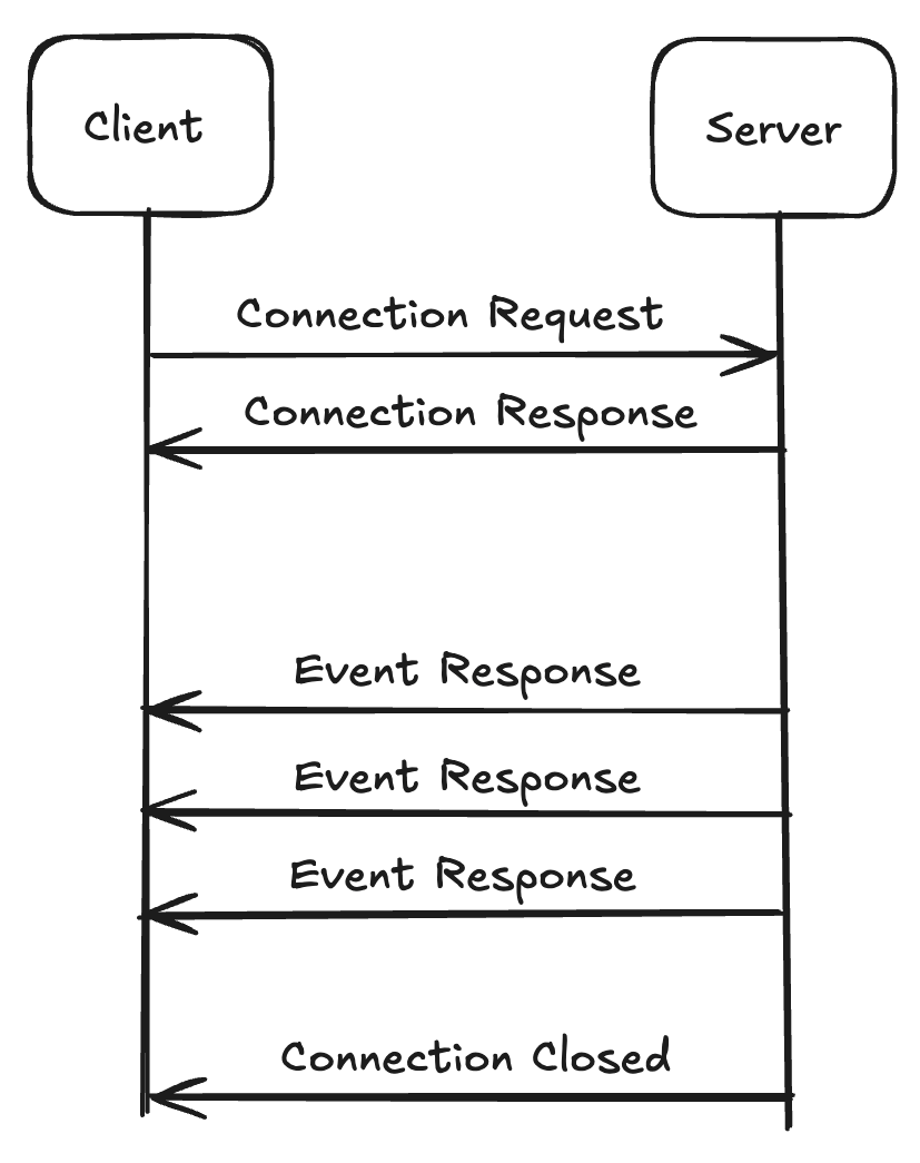 - SSE(Server-Sent Events)는 클라이언트와 서버 간에 지속적인 연결을 유지하면서, 서버에서 실시간 이벤트를 클라이언트로 자동 푸시합니다.