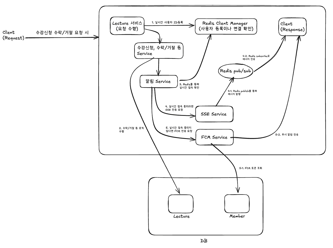 - 알림 구독자(Subscriber): 실제 SSE 연결을 관리하고 메시지를 전송하는 쪽은 오직 Redis에서 오는 메시지만 신경 쓰면 됩니다.